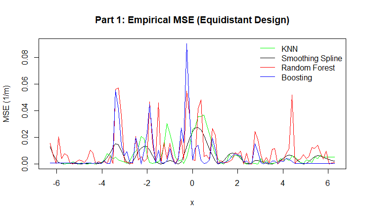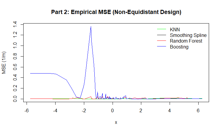 Figure 9: Empirical MSE for KNN, Smoothing Spline, Random Forest, and Boosting.