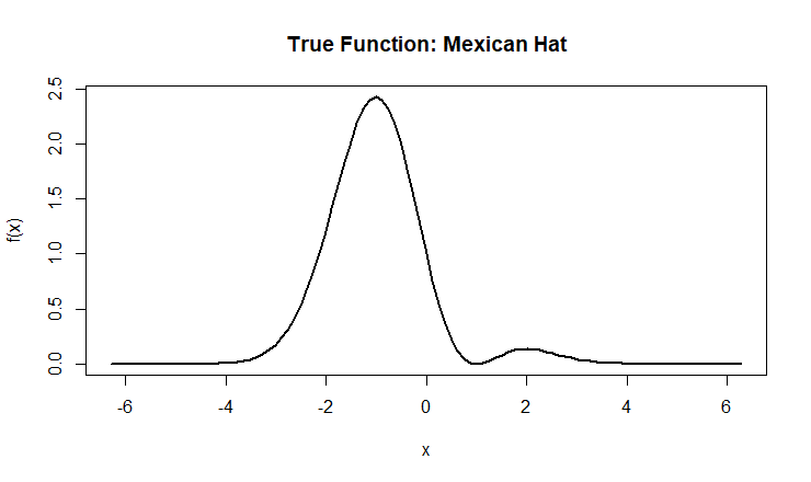 Figure 1: The Mexican function “is known to pose a variety of estimation challenges”. If a simpler function is used, it is likely that all models would perform similarity, making it hard to note the bias and variance trade offs among the models.
