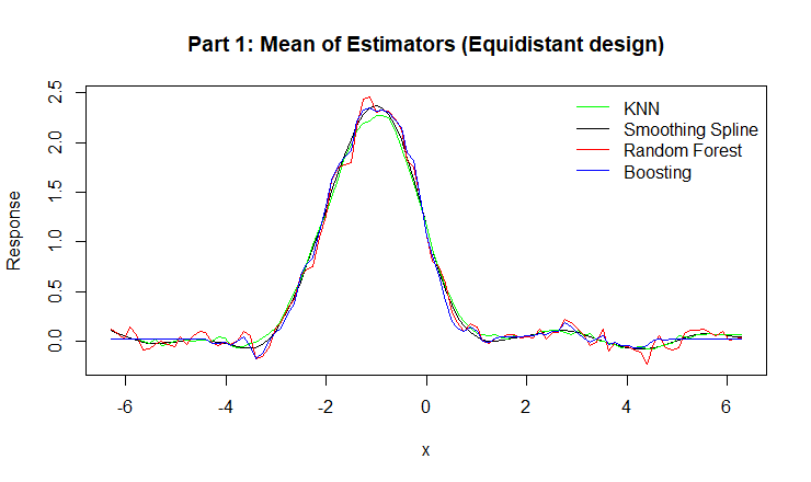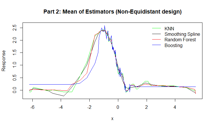 Figure 2: Mean of Estimators for KNN, Smoothing Spline, Random Forest, and Boosting.