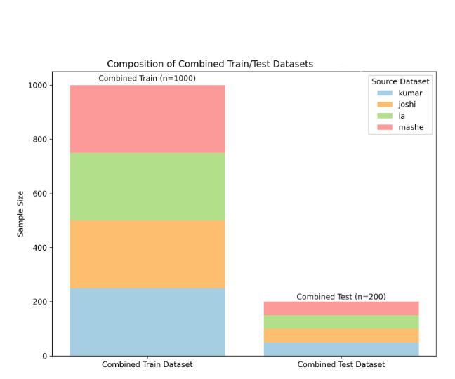 Figure 5— All datasets combined with downsamping logic of retaining as much data as possible in each data set. Split into subsets of 80% train and 20% test.